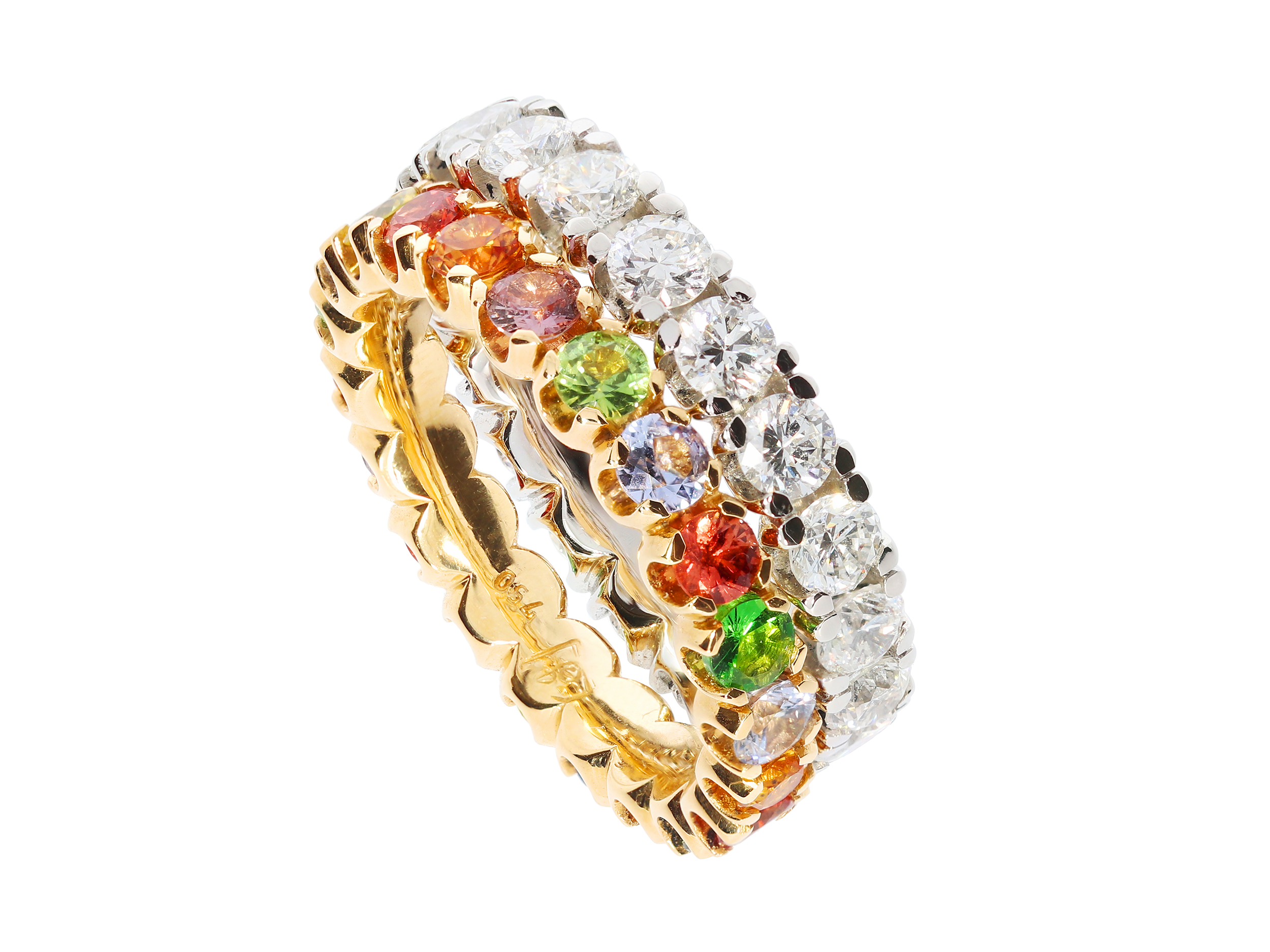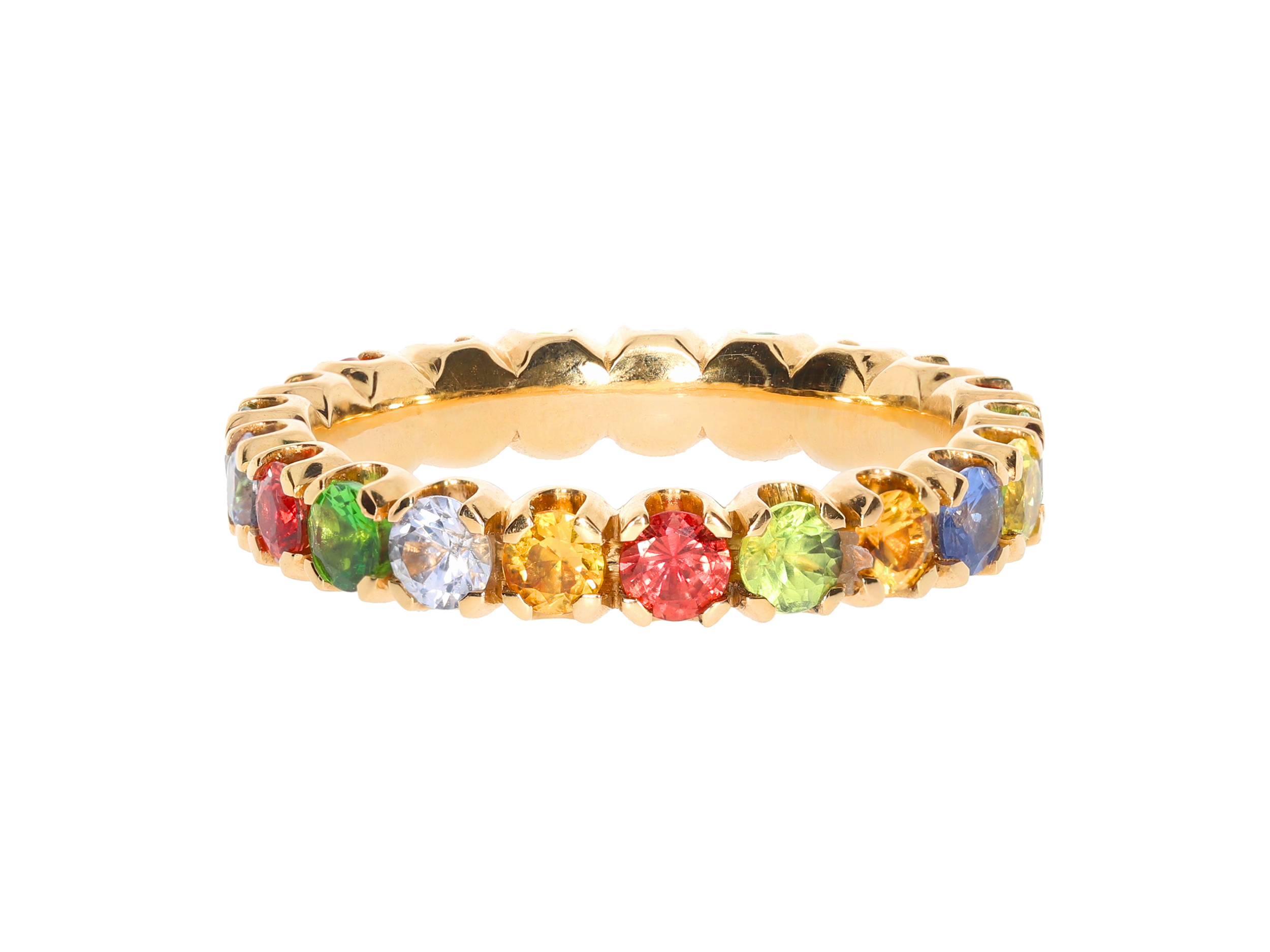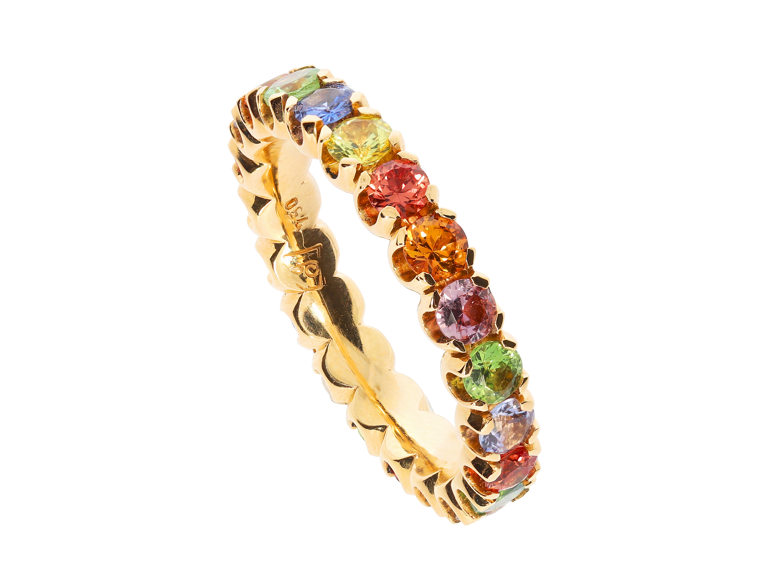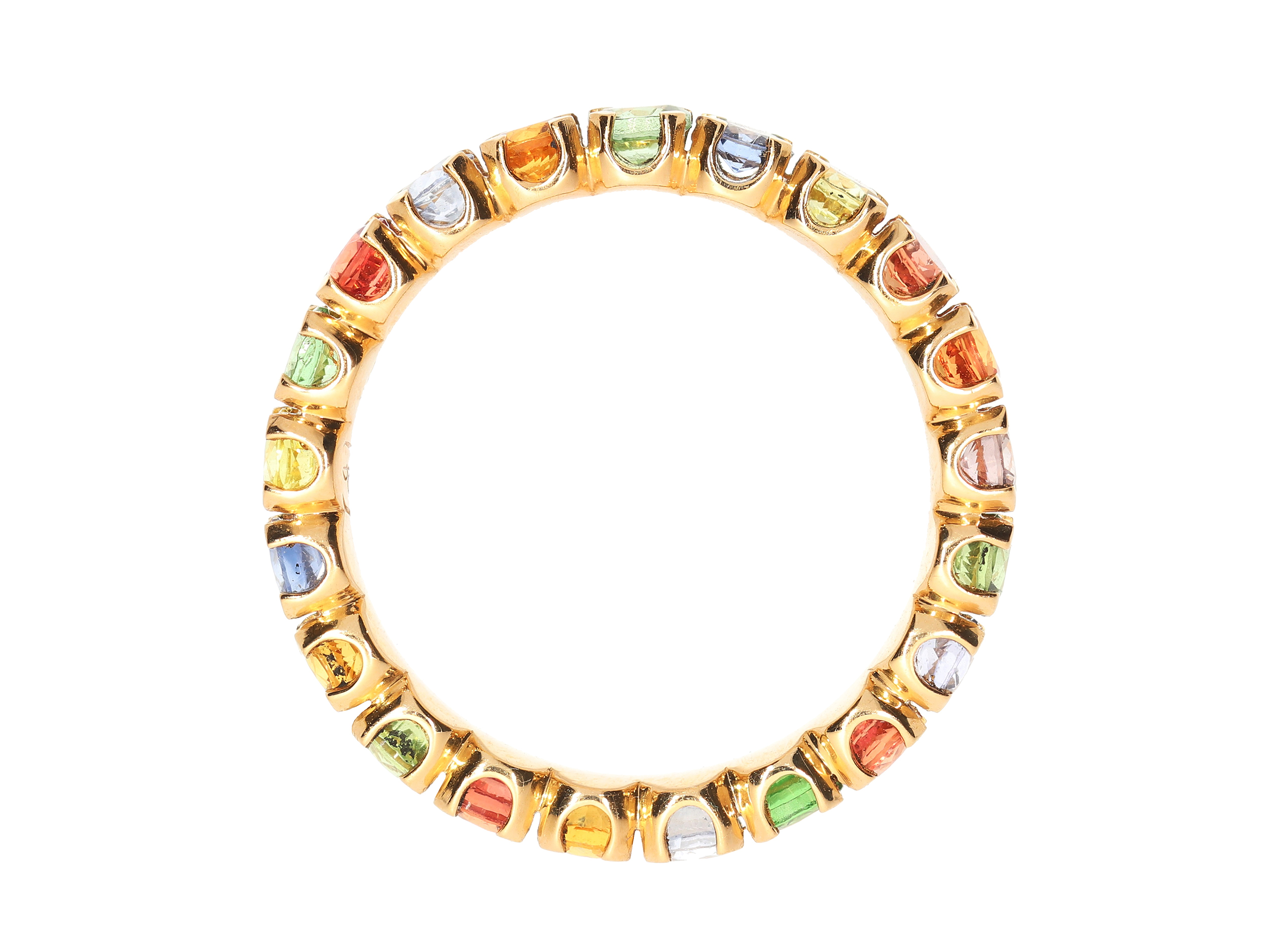 Ring aus Roségold mit umlaufend gefassten Safiren in verschiedenen Farben